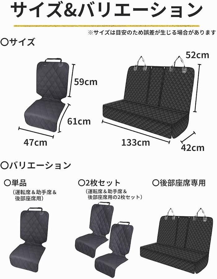 「商品仕様」〇バリエーション:シングル(運転席&助手席&後部座席用)、ダブル(運転席&助手席&後部座席用の2枚セット)、後部座席専用。