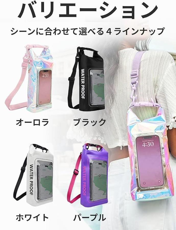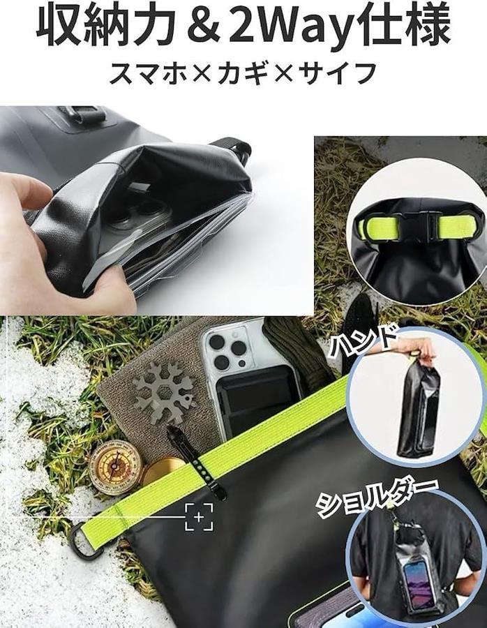丈夫な生地で日常的な使用にも適しており、長く愛用できる防水スマホバッグです。