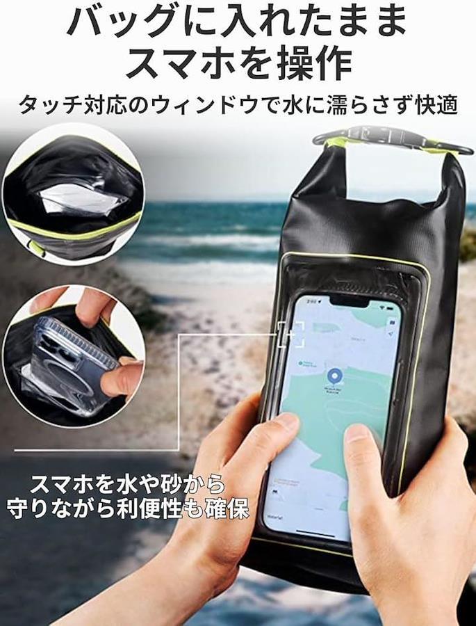 防水ポーチとしてだけでなく、砂や泥の侵入も防いでくれるため、キャンプ場や水辺のレジャーでも安心して使用できます。