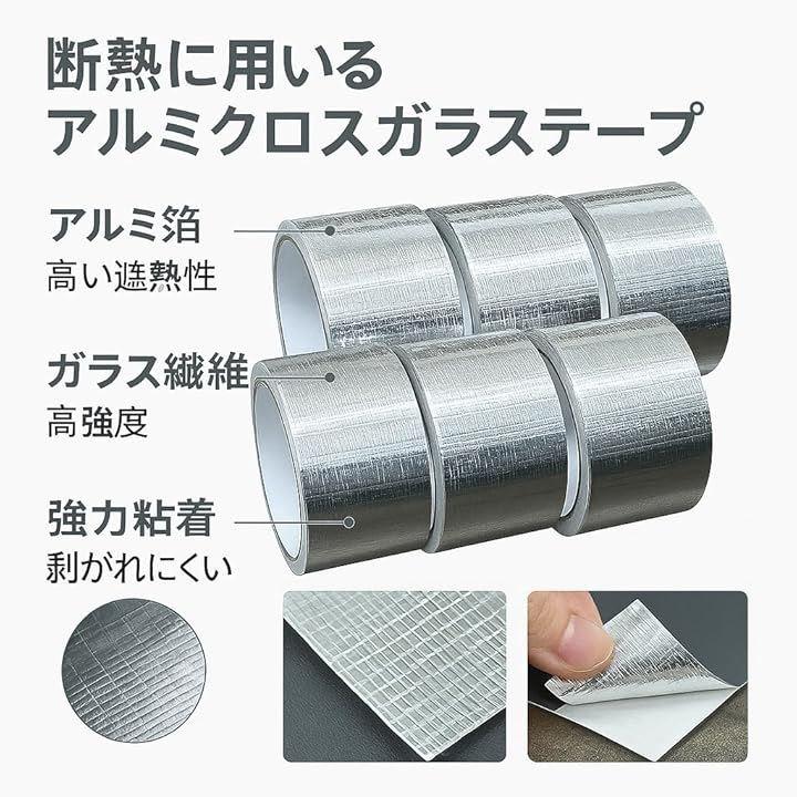 「強力補修&制振効果を発揮。アルミガラスクロステープ 6本セット」 制振・耐熱・補修に最適な高強度テープ。 ガラス繊維配合で優れた耐熱性・耐久性を実現。