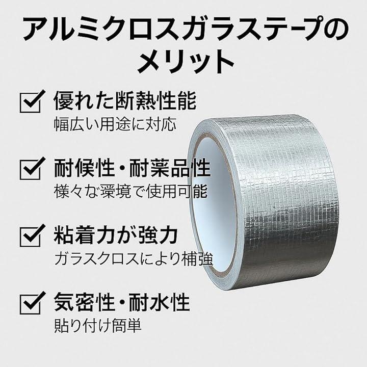 用途:吸音材・制振シート補強、遮熱、補修、保温・保冷対策 強力な固定力と耐久性を兼ね備えたアルミガラスクロステープで、しっかり補修&制振。
