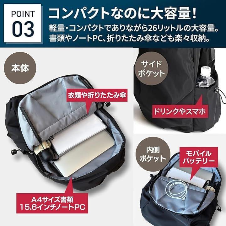 「デイパック 26L リュック 多機能 小さめ リュックサック」は、通勤や通学、さらには出張や旅行まで多目的に活躍するバックパックです。