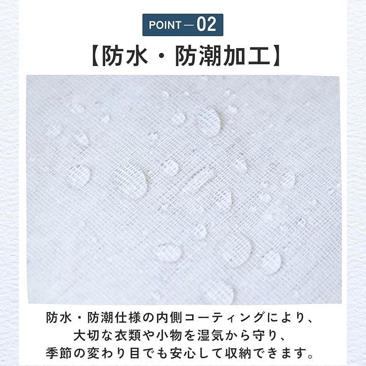 「防水・防潮加工」防水・防潮仕様の内側コーティングにより、大切な衣類や小物を湿気から守り、季節の変わり目でも安心して収納できます。