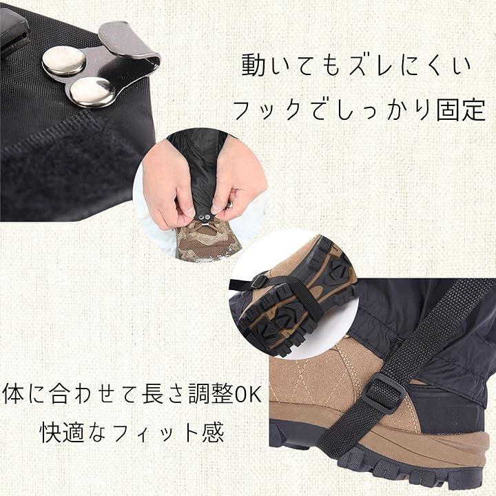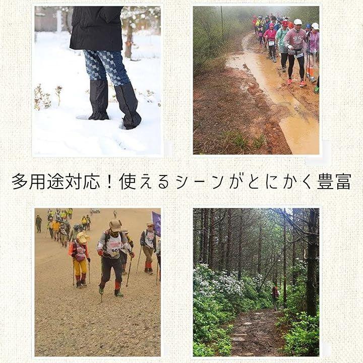 「全天候対応で安心」この登山用ゲイターは、雨や雪、砂埃、泥汚れから足元をしっかりと守ります。