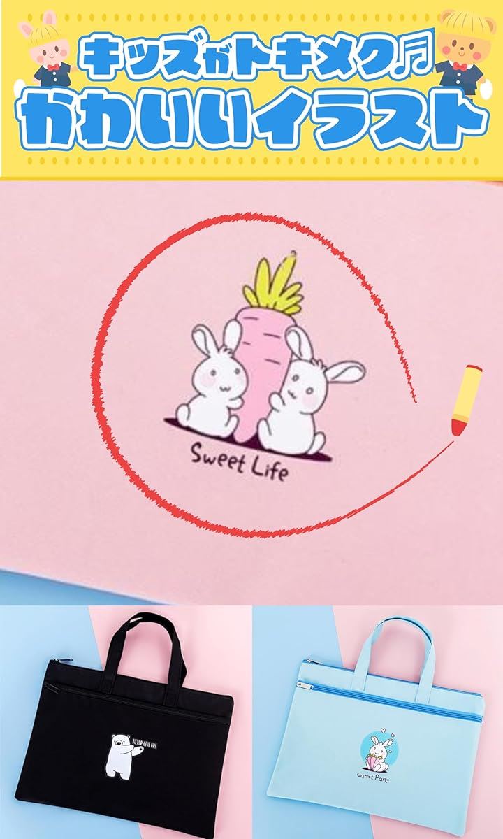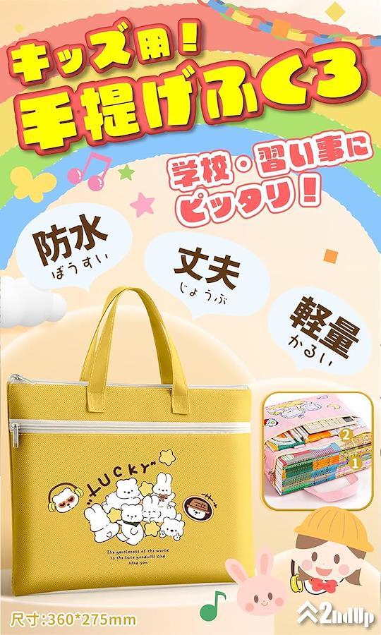 絵本袋、サブバッグ や ピアノのおけいこバッグ にも最適。机の横のフックにかけたとき床にすれないように、短めの持ち手がGOOD。 可愛くてシンプルなイラスト付きで毎日の通学、レッスンが楽しくなる。しっかり閉じられるファスナー式で走っても中身が落ちる心配もありません。