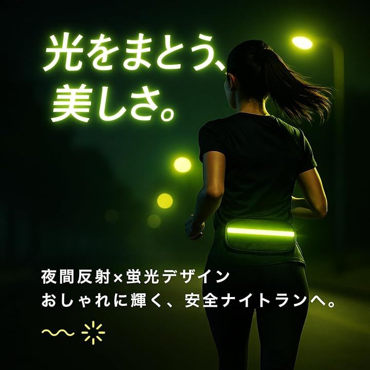 「夜も輝く、安心の視認性」 夜間ランや早朝の散歩に嬉しい反射素材を採用。