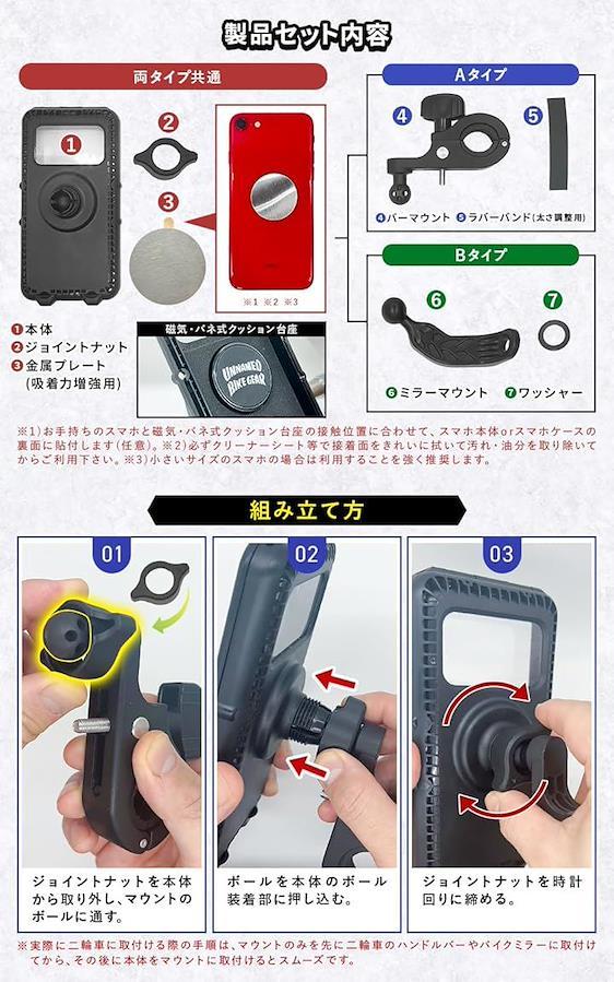 Bタイプはバイクや原付のバイクミラー(M10ネジ)に取り付けることができます。