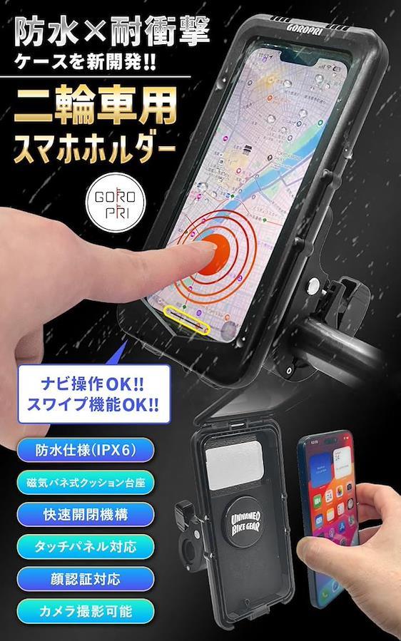 「走るほど信頼が深まる!!雨でも道に迷わない!!」本製品は防水・防塵・防汚の3つの機能をハイレベルで実現した二輪車用スマホホルダーとなります。