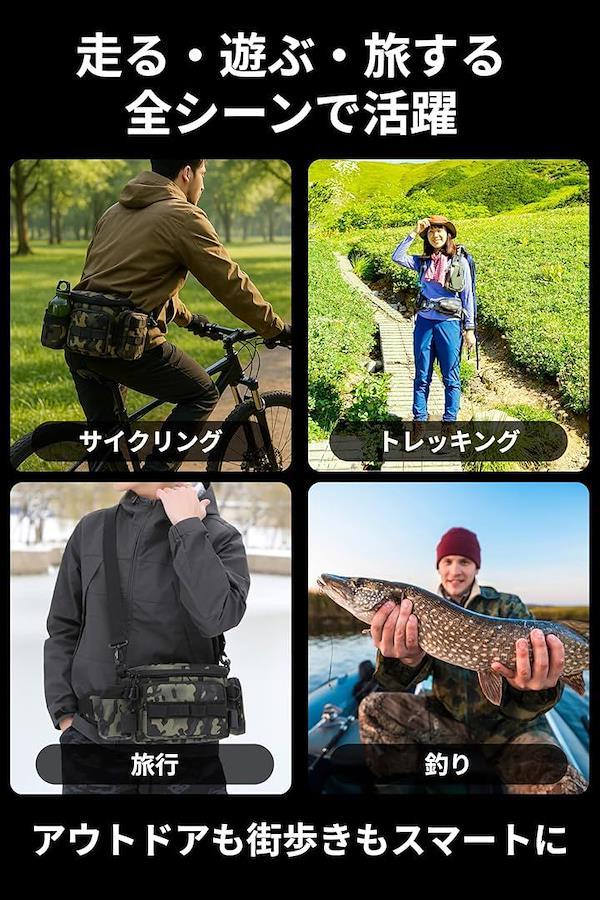 「幅広いシーンで使える多用途デザイン」ツーリングはもちろん、サイクリング、釣り、キャンプ、旅行、街歩きなど幅広いシーンで活躍。