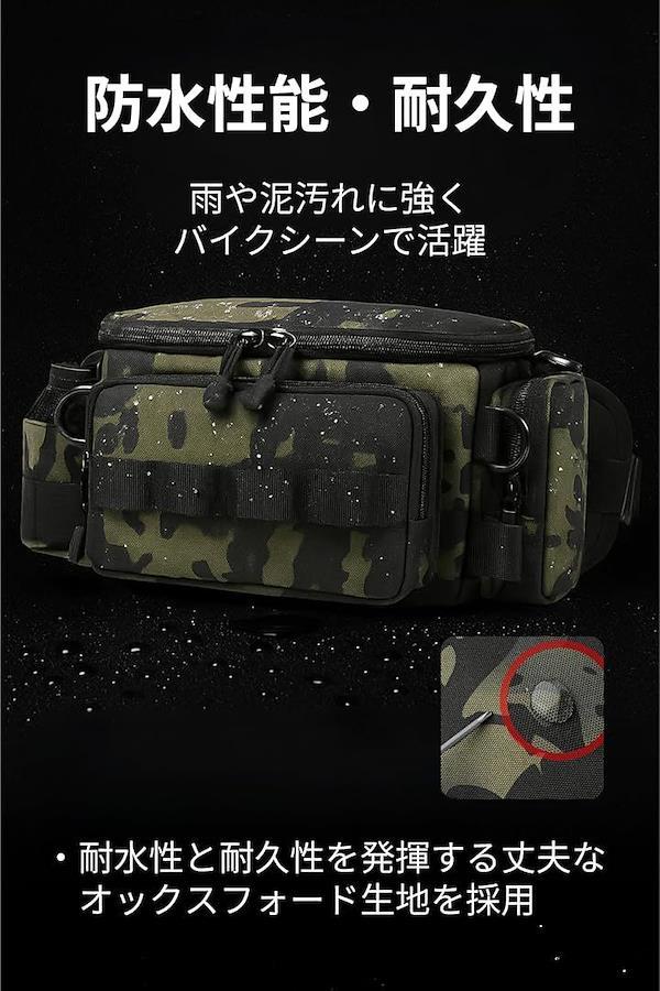 旅行やキャンプ、登山、釣りなど、バイク以外のシーンでも活用できる汎用性の高いバッグです。