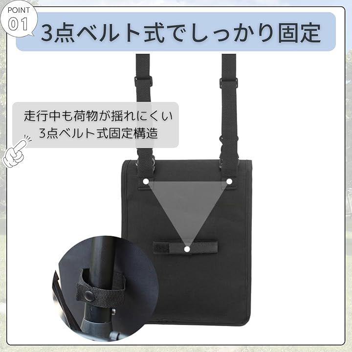 「しっかり固定&ブレにくい設計」走行中も荷物が揺れにくい3点ベルト式固定構造。
