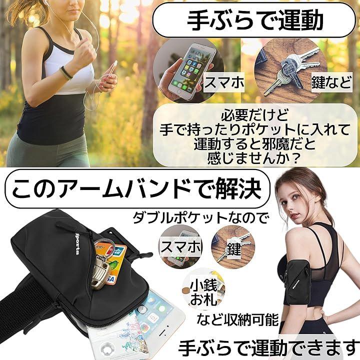 このアームバンドはダブルポケットで、スマホはもちろん、鍵やカード類も収納できるので、両手が解放され、手ぶらでジョギング、ランニングなど運動ができます。