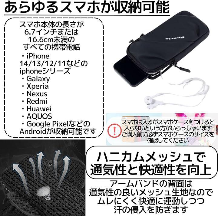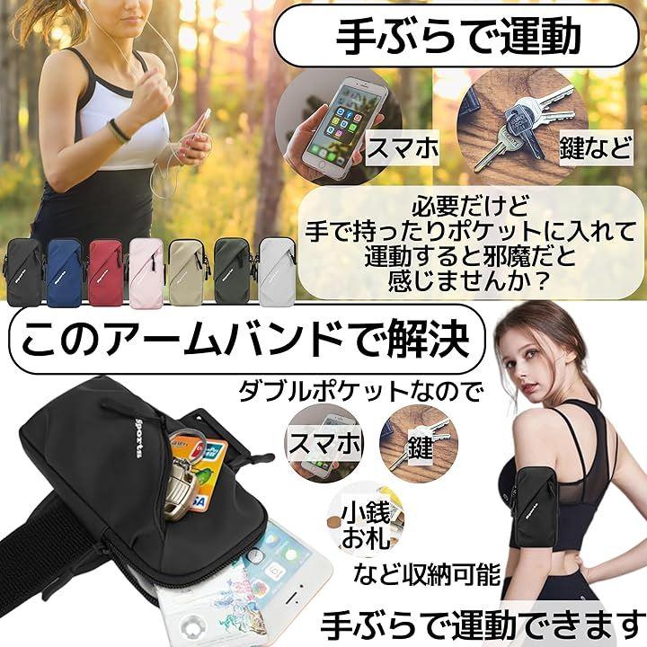 このアームバンドはダブルポケットで、スマホはもちろん、鍵やカード類も収納できるので、両手が解放され、手ぶらでジョギング、ランニングなど運動ができます。