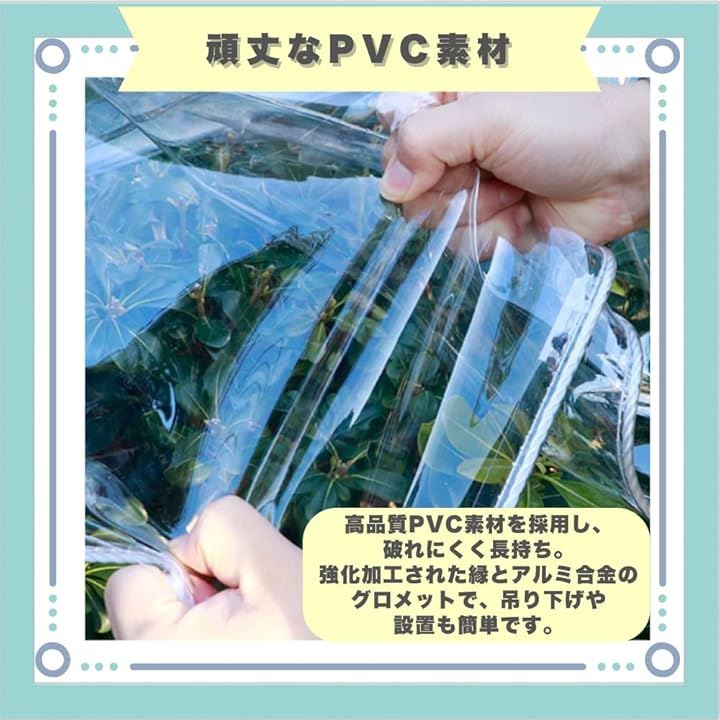 「クリアな防水シート」透明な防水シートは日光を遮らず、植物の光合成をサポート。