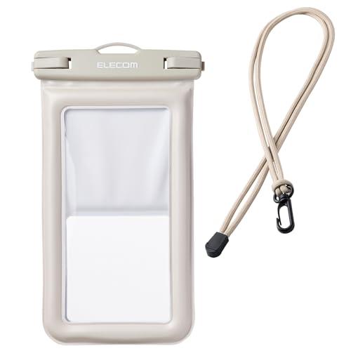 防水スマホケース/ポーチ IPX8 水没防止設計 顔認証対応 ショルダーストラップ付【iPhone Android 等 ~6.9インチ スマホ 対応】 グレージュ P-WPSF05GB