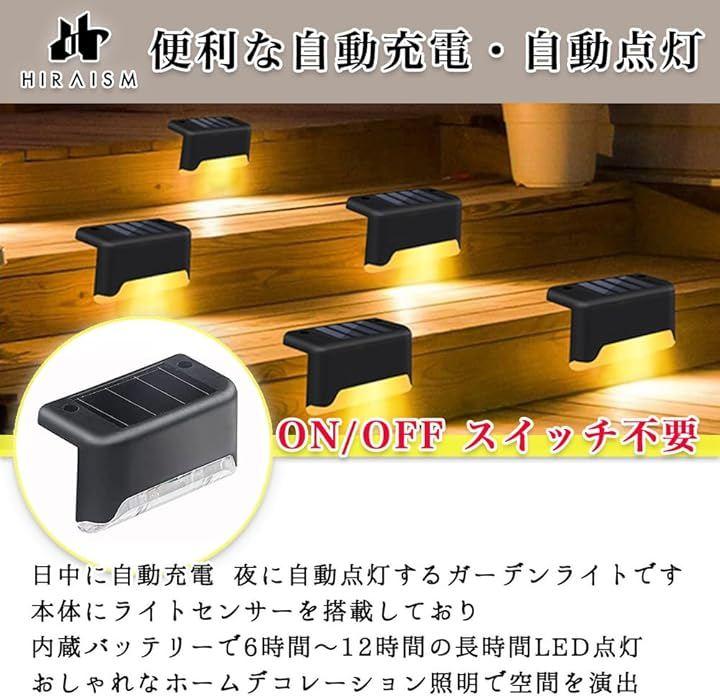 「on/offスイッチ不要。便利な自動充電・自動点灯」日中に太陽光など良好な光条件下によって自動で充電、夜には暖かい光で自動点灯するHIRAISMのガーデンライトです。