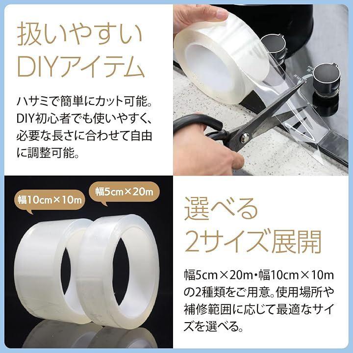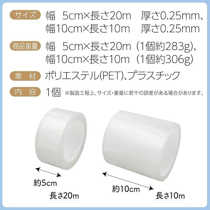 サイズは幅5cmx長さ20mと幅10cmx長さ10mの2種類。