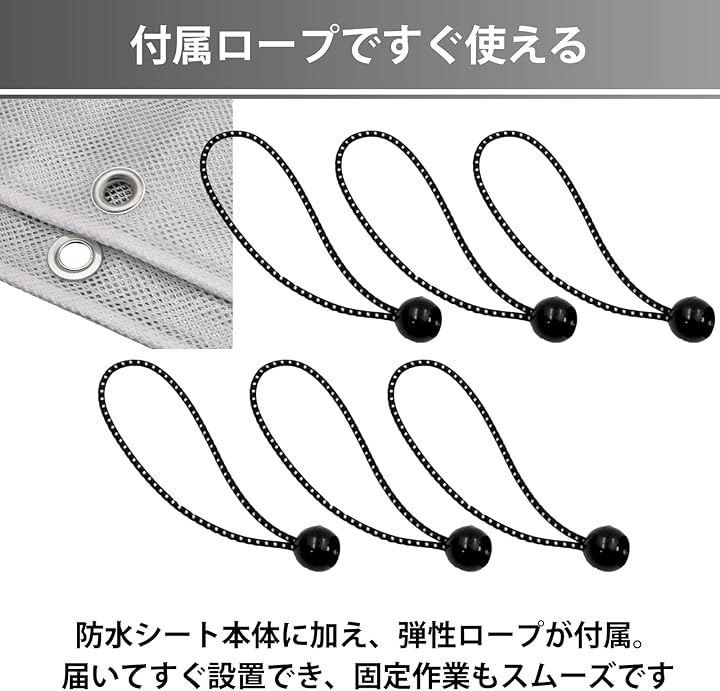 Waterproof Vinyl Sheet for Outdoor Use, Transparent, Thick, Rain Protection, Disaster Prevention, Includes 6 Elastic Ropes
