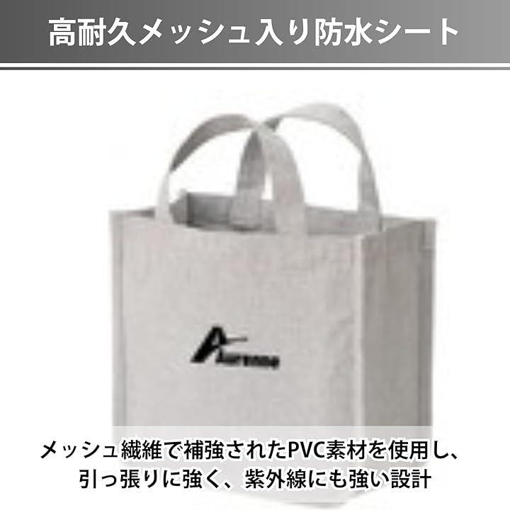 「高耐久メッシュ入り防水シート」 メッシュ繊維で補強されたPVC素材を使用し、引っ張りに強く、紫外線にも強い設計。