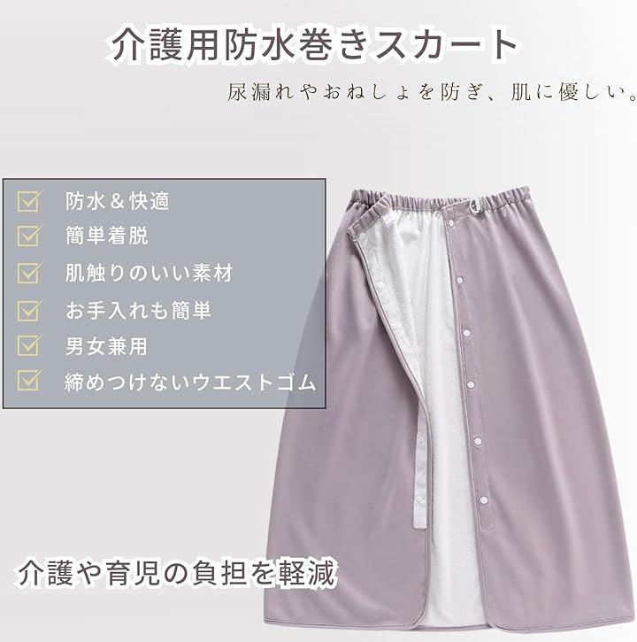 「介護用防水巻きスカート」尿漏れやおねしょを防ぎ、肌に優しく快適な着心地。