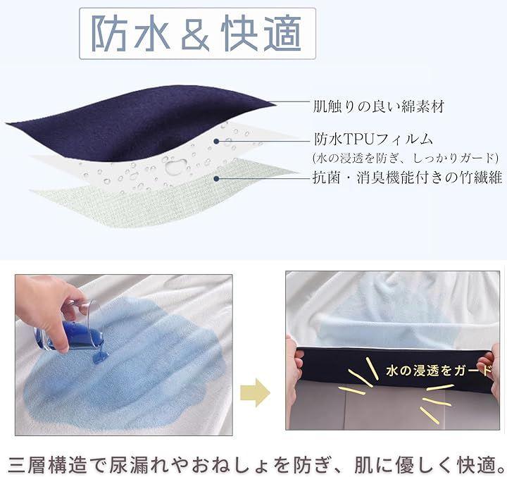 「防水&快適」外側は肌触りの良い綿素材、中間層は防水TPUフィルムで水の浸透を防ぎ、しっかりガードします。