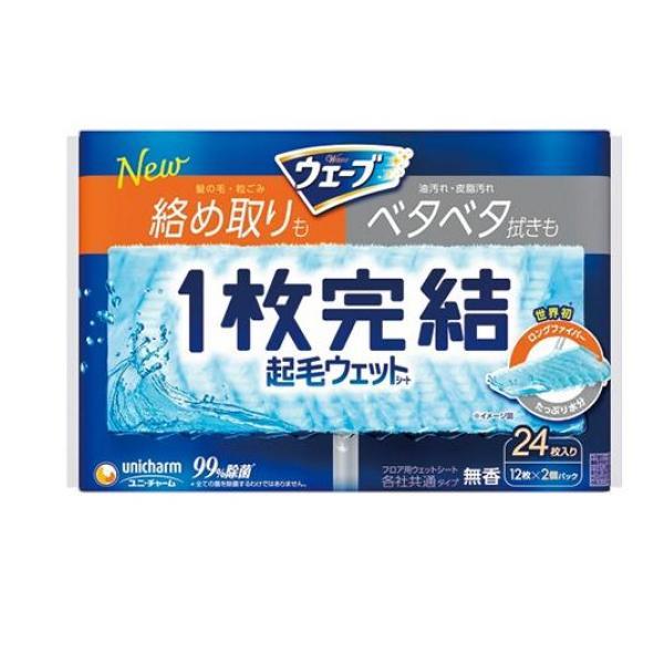 製品の特徴●ユニ・チャーム Wave ウェーブ フロア用 1枚完結 起毛ウェットシート 無香●各社共通タイプ●絡めるロングファイバー・ゴミ取りポケット付きのたっぷり水分シートで、髪の毛・粒ゴミ・ベタベタ汚れをキャッチ!●絡め取りとベタベタ拭きを1度にできて床掃除が1枚完結!●水分量があり程よいウェット感が最後まで続く。●99%除菌・24時間抗菌・消臭成分配合!●フロアワイパー本体は別売です。●品名:住宅用お掃除シート