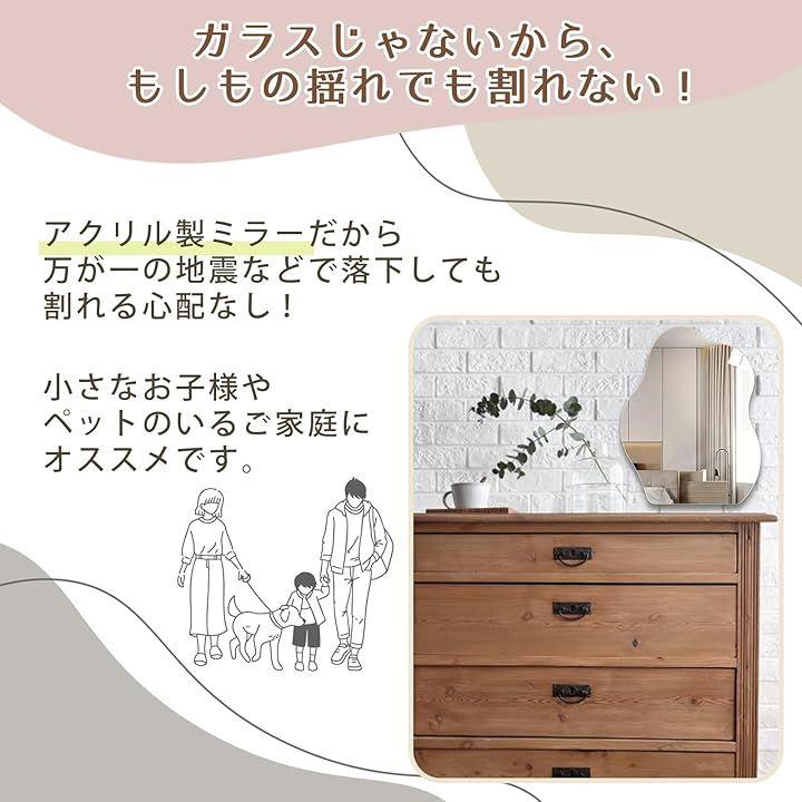 従来のガラスミラーとは異なり、軽量かつ割れにくいため、落下時の危険が少なく、小さなお子様や高齢者がいるご家庭でも安心してご使用いただけます。