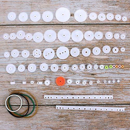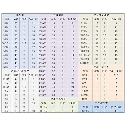 通常1-5営業日で発送:パッケージ:スピンドルギヤ 9種、クラウンギア 11種、平歯車 12種、二段歯車 19種、ベルトプーリ 7種、ウォームギア 2種、6個のモーター用車軸スリーブ 3種、三方車軸スリーブ、ベベルギヤ、連結ラック 2種、ベルト 5種、合計72種あり、75個入り/サイズ:種類によって、歯数と歯車の径とシャフトの径が違います。歯数は最小は8、最大は56があります。シャフトの径はほとんど2mmですが、詳細は画像をご参考ください。/特徴:歯数・サイズ・種類がたくさんあって、予備品としても使い勝手が良いです。本格工作前の試作品にも最適です。/材質:プラスチック;モジュール:0.5/応用:プラモデル・模型のカー、飛行機、ボート、ロボットなどをモーターライズするに、おもちゃの修理や小型家電の修理に使われています。