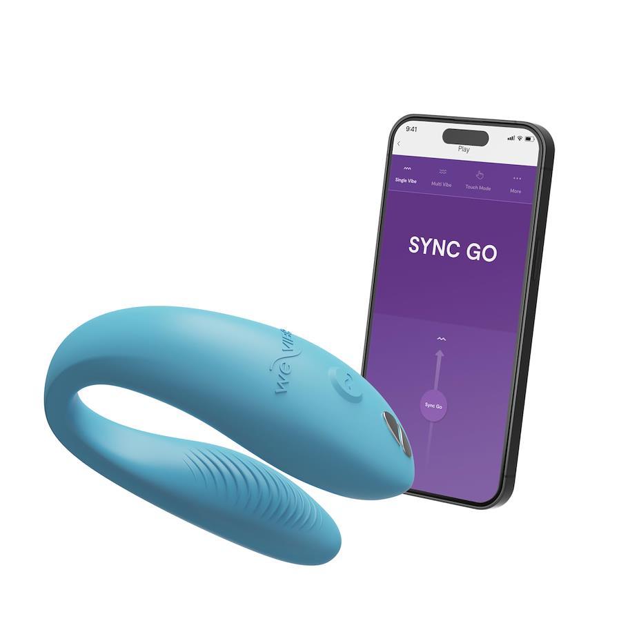 We-Vibe Sync Go カップル用バイブレータ トラベルエディション - C型バイブレーター - ウェアラブル振動カップルトイ - 振動共有 - 充電式 - トラベルケース-青い