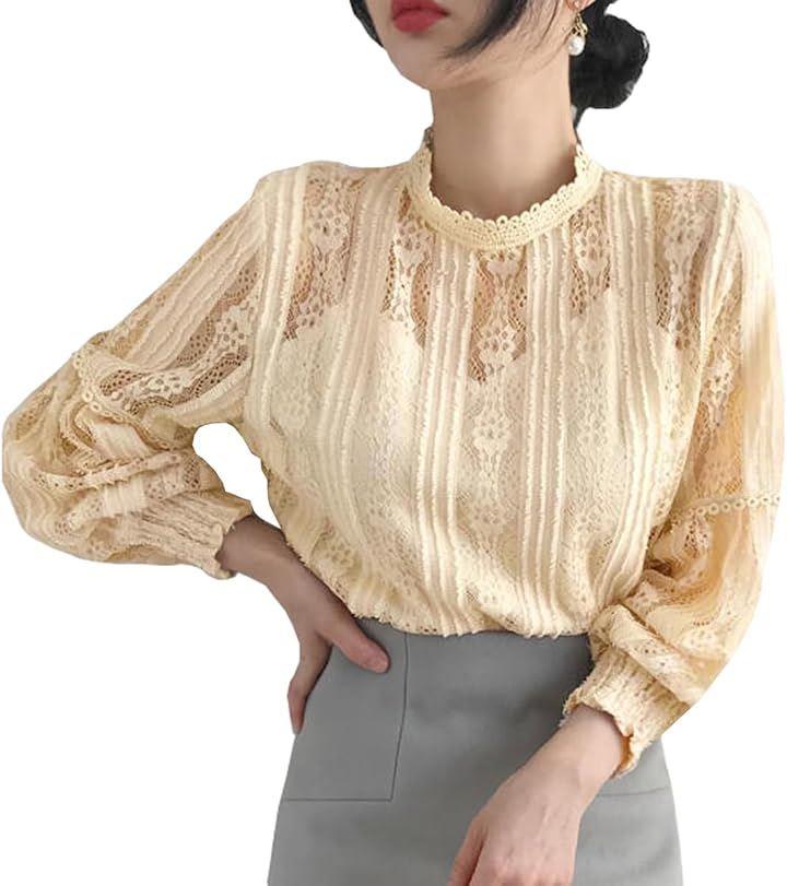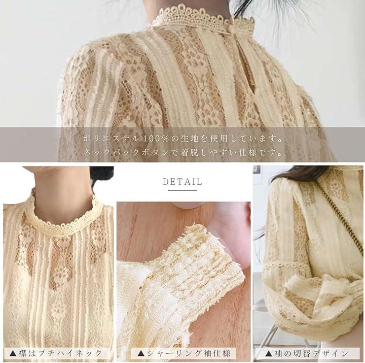 首元にしっくりおさまるバンドカラーレースブラウス。