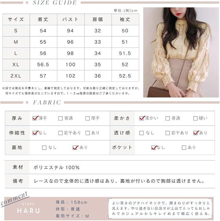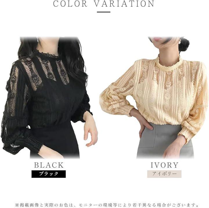 総レースで2種類のレースで組み合わせてあるので、高見えするデザイン。プチハイネックになっているので、1枚でそのまま着ても、スウェットやニットの下にレイヤードスタイルとして使うこともできます。
