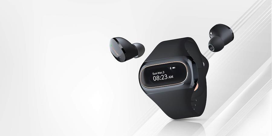 3営業日以内に発送≪新品未開封品≫:Wearbuds 完全ワイヤレスイヤホン一体型スマートバンド イヤホン bluetooth Hi-Fi音質 マイク付き 通話 AptX/AAC/SBC対応 IPX6防水 5.5h連続駆動 タッチコントロール 歩数計 カロリー計 専用アプリ (ブラック)