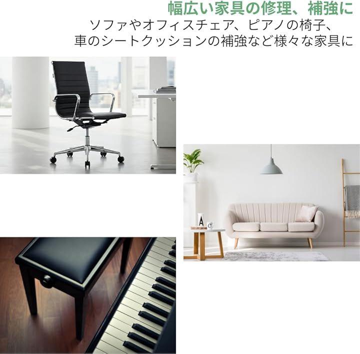 ソファやダイニングチェアはもちろん、オフィスのデスクチェア、ピアノの椅子、車のシートクッションの補強など、アイデア次第で様々な家具の修理・補強にお使いいただけます。