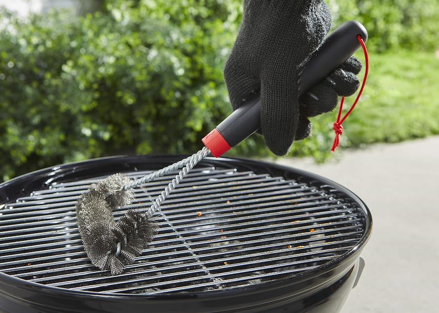 ? 3側面の剛毛ブラシ設計により、広いエリアも素早く掃除できます? グリルの端や網の間など細かな汚れも掃除可能? こびりついた食材を掃除する際に便利な握りやすくなった持ち手? 30cm(焼き網の奥まで届く長さ)? 吊り下げて簡単に収納できる切れにくくなったループ付き