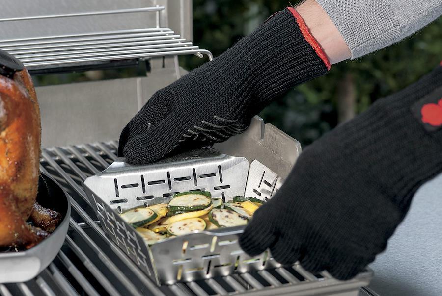 カリカリのピザの上に色鮮やかなグリルした野菜を散りばめてください。お気に入りの秋のご馳走に添える焦がしたズッキーニとかぼちゃを。あるいは、これまで知らなかった風味をもたらすために、デリケートに焼いた数々のさいの目切りの野菜を。スライスした野菜やお肉の細切れの調理にも、完全に安心して、デラックス調理バスケットを利用できます。