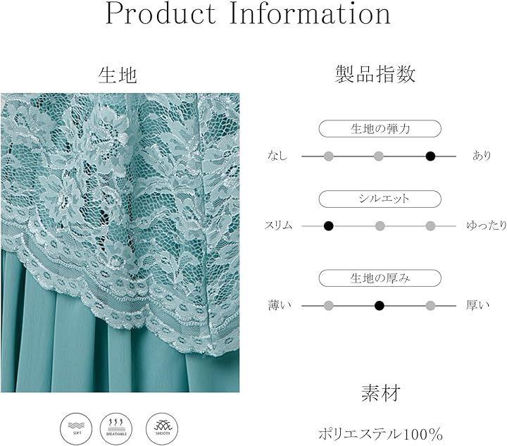 「MIX生地で快適な着心地」 スカート部分には軽やかなシフォン素材を採用しており、さらりとした着心地と女性らしいフワッと広がるシルエットが魅力です。