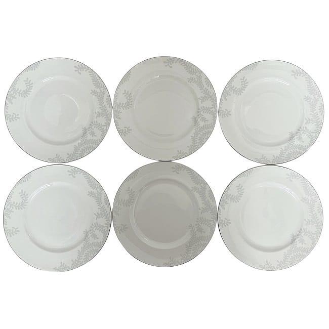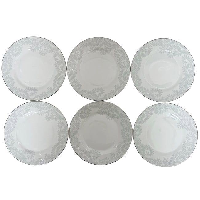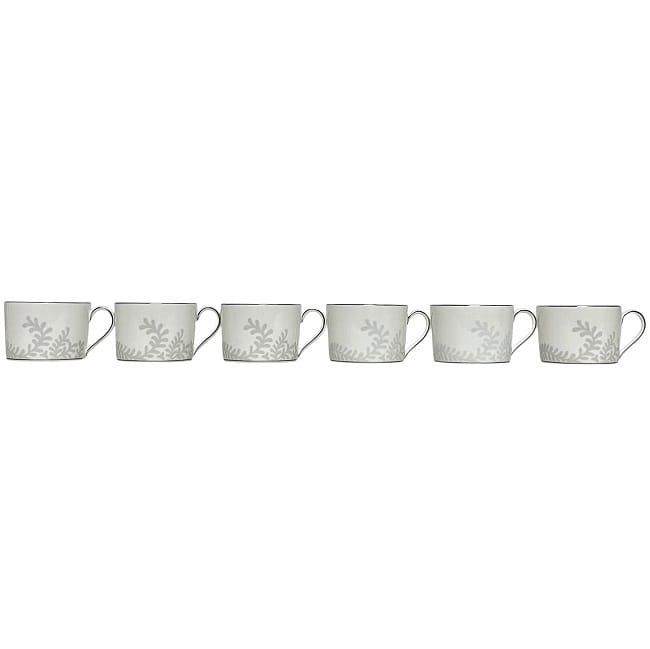 Wedgwood 27cm cup, saucer, and plate set of six in white, gray, and silver. Vera Wang Trailing Vine design. Excellent condition. Excellent condition. Excellent condition. Perfect for coffee cups and side dishes. A great gift idea.