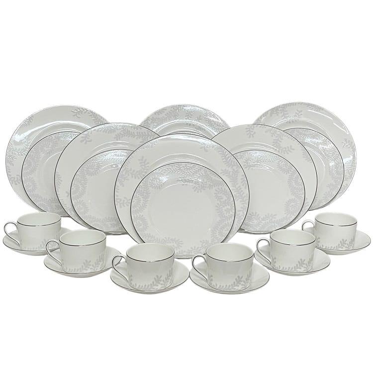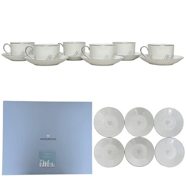☆---- 商品について ----☆ウェッジウッド カップ ソーサー プレート 6客セット ec-23965 ホワイト グレー シルバー ヴェラウォン トレイリングバイン 未使用 美品 陶器 Sランク WEDGWOOD 27cm 平皿 コップ コーヒーカップ 取り皿 贈り物にも プレゼント 人気 ブランド 本物 鑑定済み