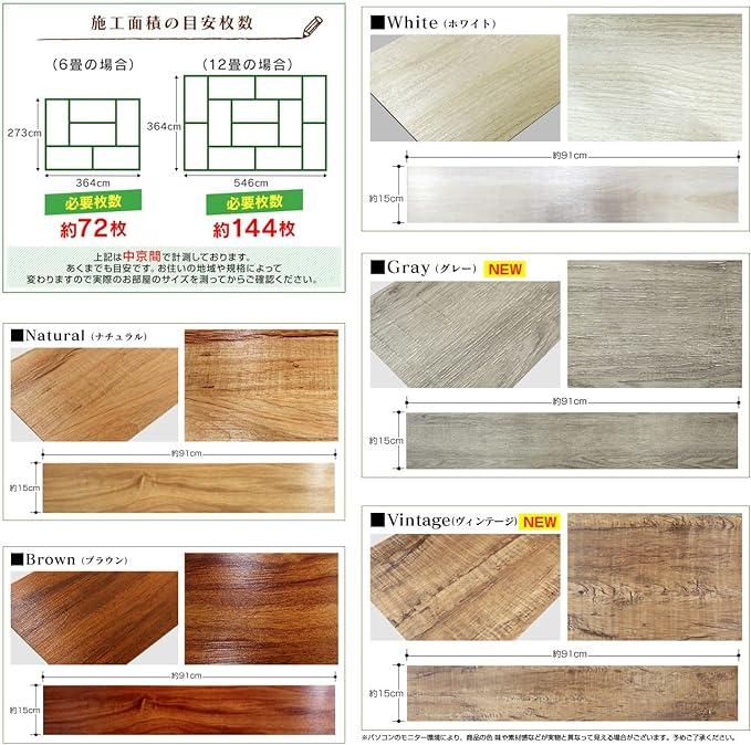 ■商品名WEIMALL フロアタイル 144枚セット(約12畳) 置くだけ 貼るだけ 接着剤不要 粘着シート 防水 ウッド フローリング 床材 DIY (木目調 ナチュラル)