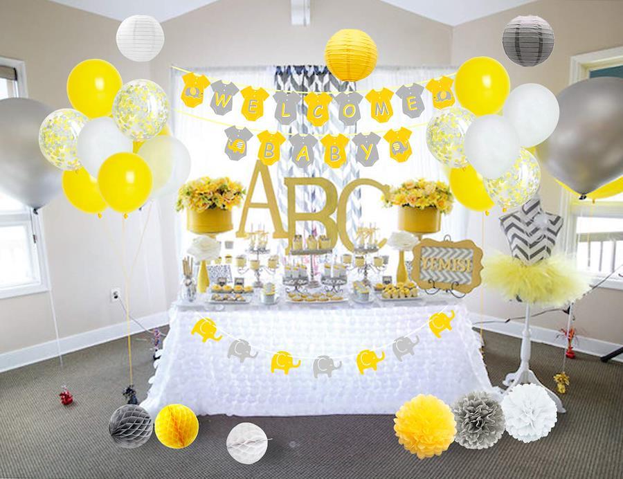 【パッケージに含まれるもの】:1つのwelcome babyバナー、1つの小象バナー、3つのペーパーフラワー(25.4cm)、3つの紙提灯(20.3cm)、3つのハニカムボール(15.2cm)、5つの黄色いバルーン,5つの吹雪入れバルーン,5つの白いバルーン。 【適用】適用場所は色々,ベビーシャワーパーティーだけではなく、出産お祝い,100日お祝いパーティー,1歳誕生日パーティー,幼稚園入学式などの場合に使用もいいです。 【かわいい色】可?い黄色とグレーのコーディネート,男の子にも女の子にもお似合いです 【優れた品質】このバスケットボールバナーは当社独自の設計で、ガーランドは赤ちゃん服の形になっている,面白くてパーティーの雰囲気をもっと添えます。高品質で丈夫なカードストック紙を使用しています,耐久性は抜群です。 【組み立て】ガーランドは組み立て済み,文字を見逃すこの心配はない。ほかの部品は簡単なDIYがいいです。