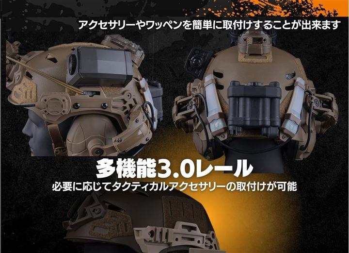 サバゲーやアウトドア装備としてはもちろん、コスプレ用途にも活躍する多機能ヘルメットです。