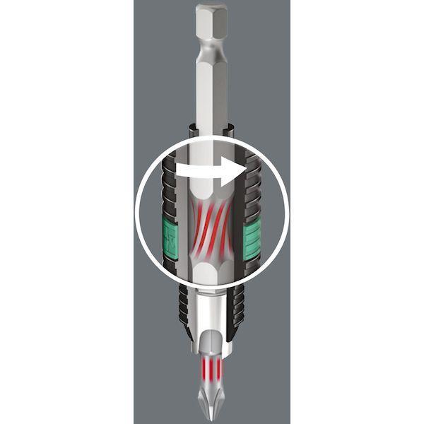 ●専用のビットホルダ(053923)と併用することで、3つのトーション(トライトーション)が作用し、ビットの長寿命化を実現しています。