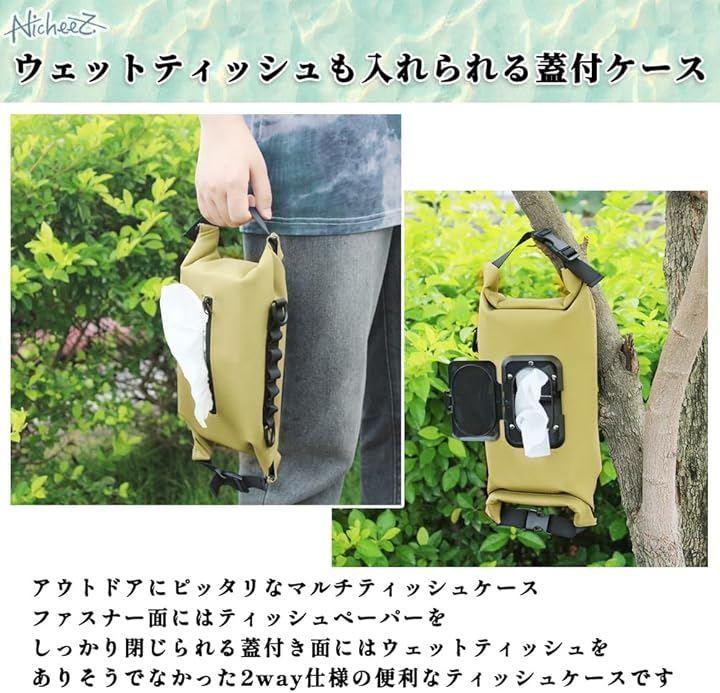「ウェットティッシュも入れられる蓋付きケース」アウトドアにピッタリなマルチティッシュケースです。