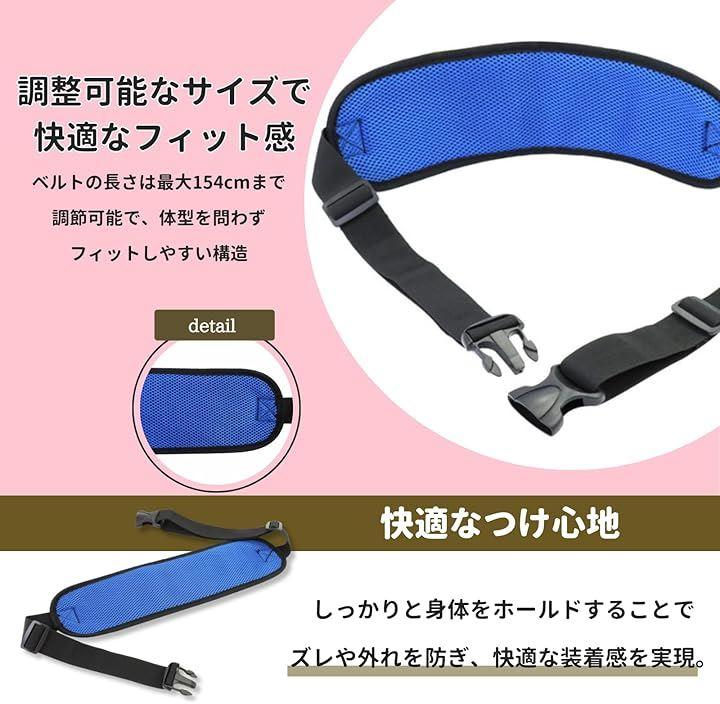 「調整可能なサイズで快適なフィット感」ベルトの長さは最大154cmまで調節可能で、体型を問わずフィットしやすい構造。