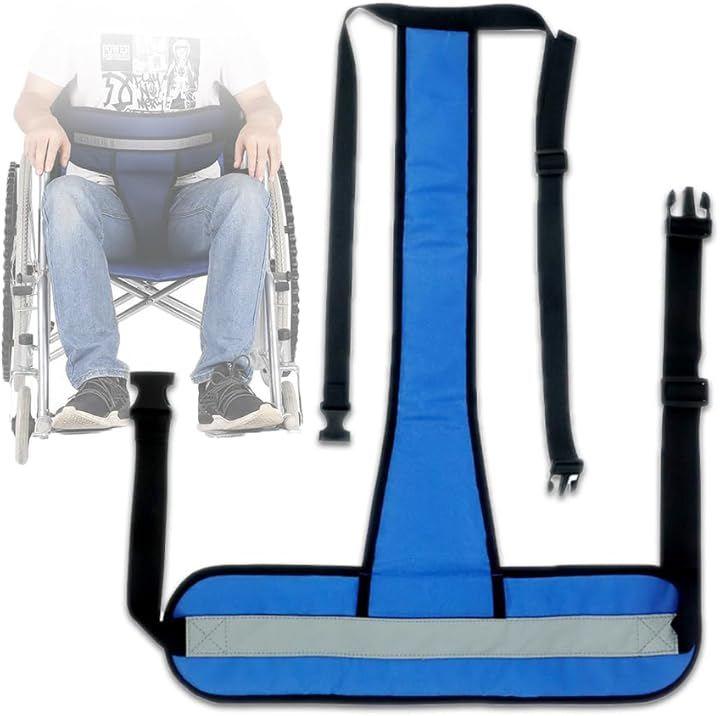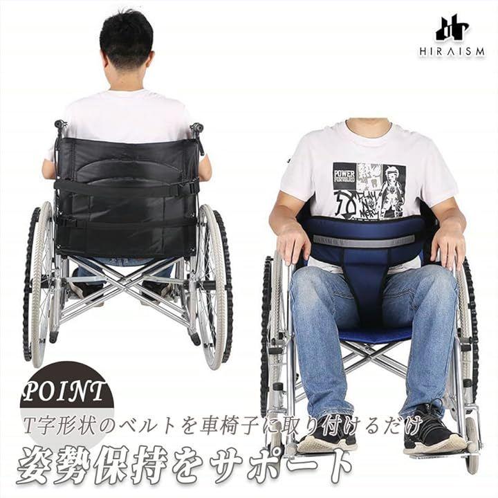 ふんどしのようなT字形状をしたベルトを車椅子に取り付けることにより、車椅子からの落下を防ぎます。