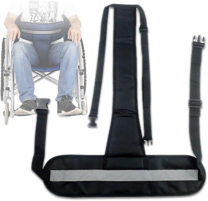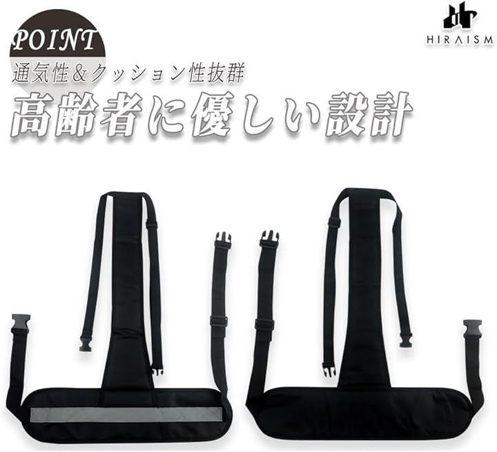 ふんどしのようなT字形状をしたベルトを車椅子に取り付けることにより、車椅子からの落下を防ぎます。
