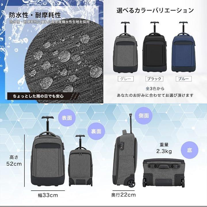 Wheeled Backpack, Carry-on Sack, Large Capacity, Lightweight, Suitcase, for Commuting, School, Business, Travel, Business Trips, Carry-on, Quiet, Waterproof, 2-Way