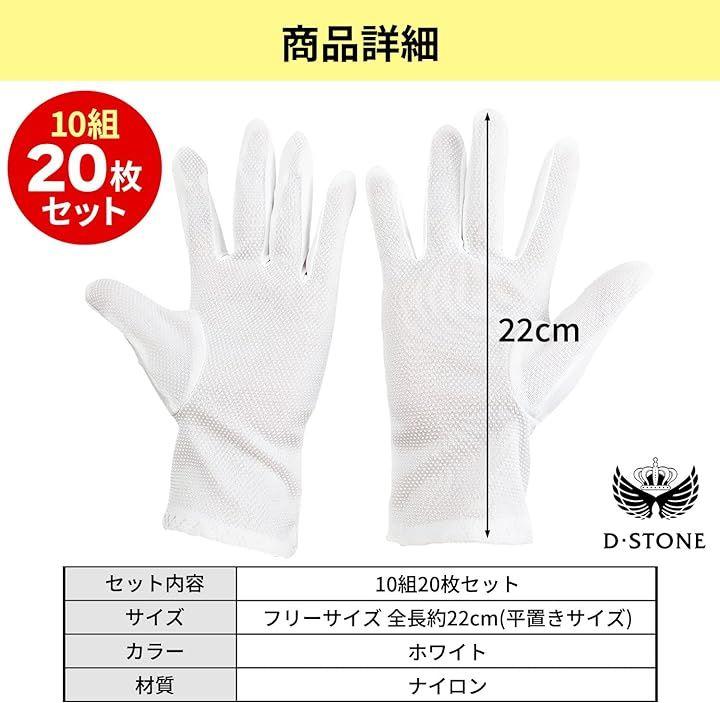 滑り止め付きの無地の白色手袋10組20枚セットです。