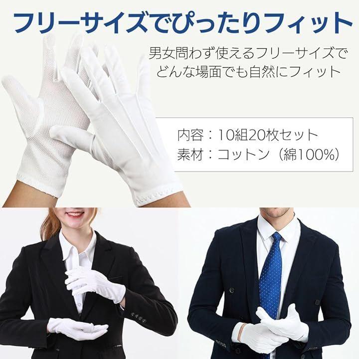 「フォーマル白手袋10組セット」滑り止め付きで安定した操作性を実現。