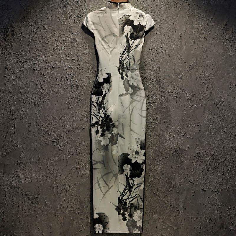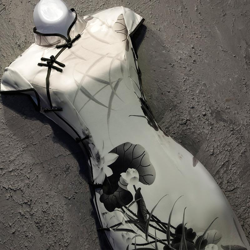 ・柄の出方は商品毎に異なります。・裏地あり・ストレッチなし・胸パッドなし・透けません・首元チャイナボタン開閉不可・着用しやすい背中ファスナー・ホワイト色・素材:ポリエステル
